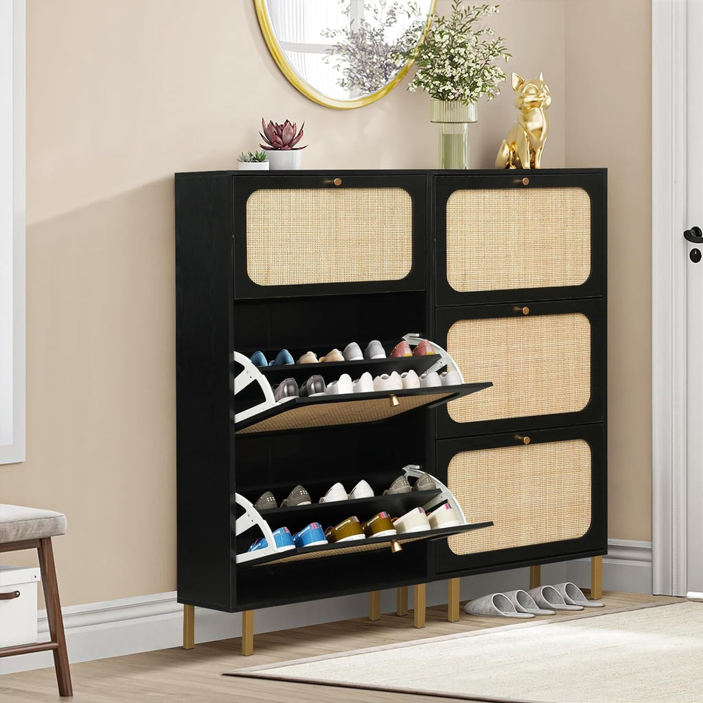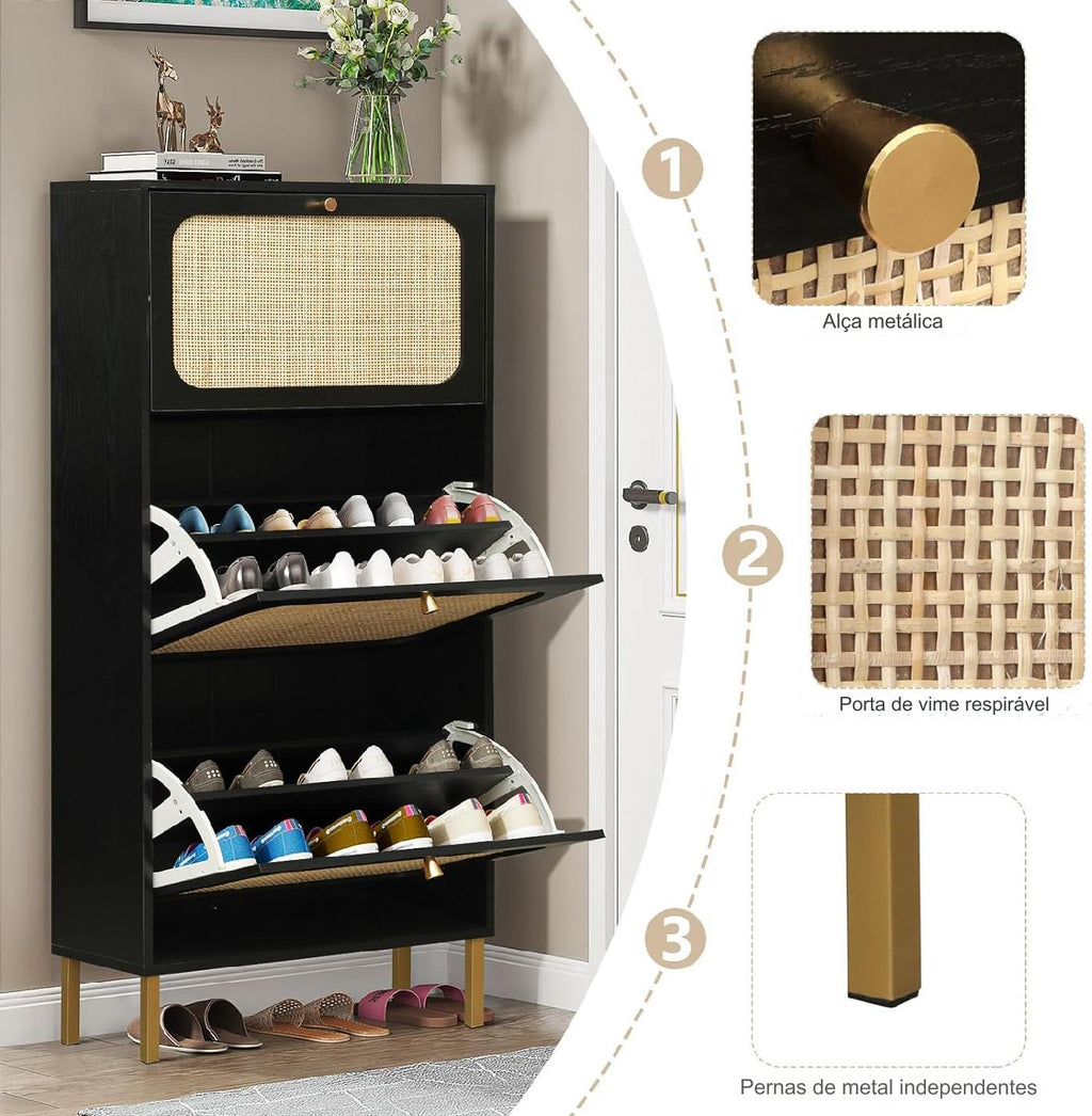 - Poupança de sacola: Medindo 23,5 cm, é perfeito para espaços estreitos como entrada e corredor. As portas giratórias mantêm seus sapatos longe do pó por não os expor diretamente ao ar.