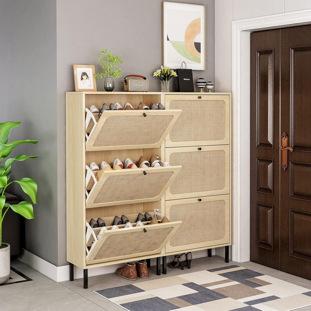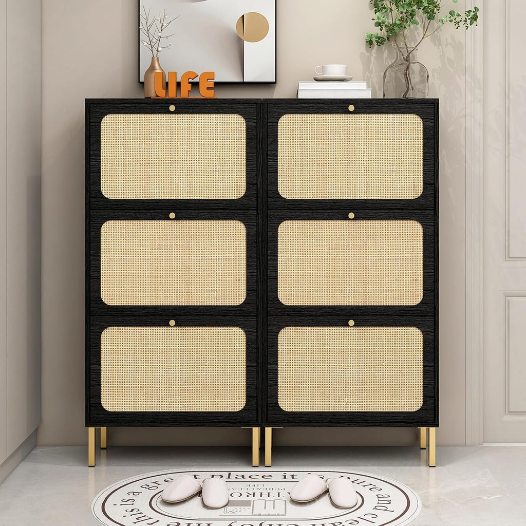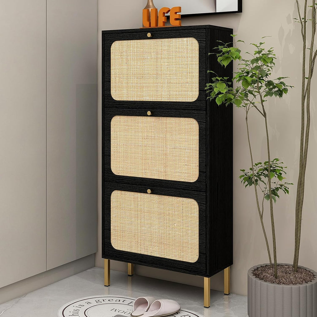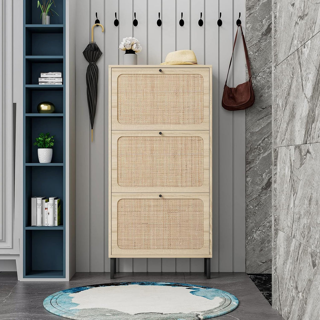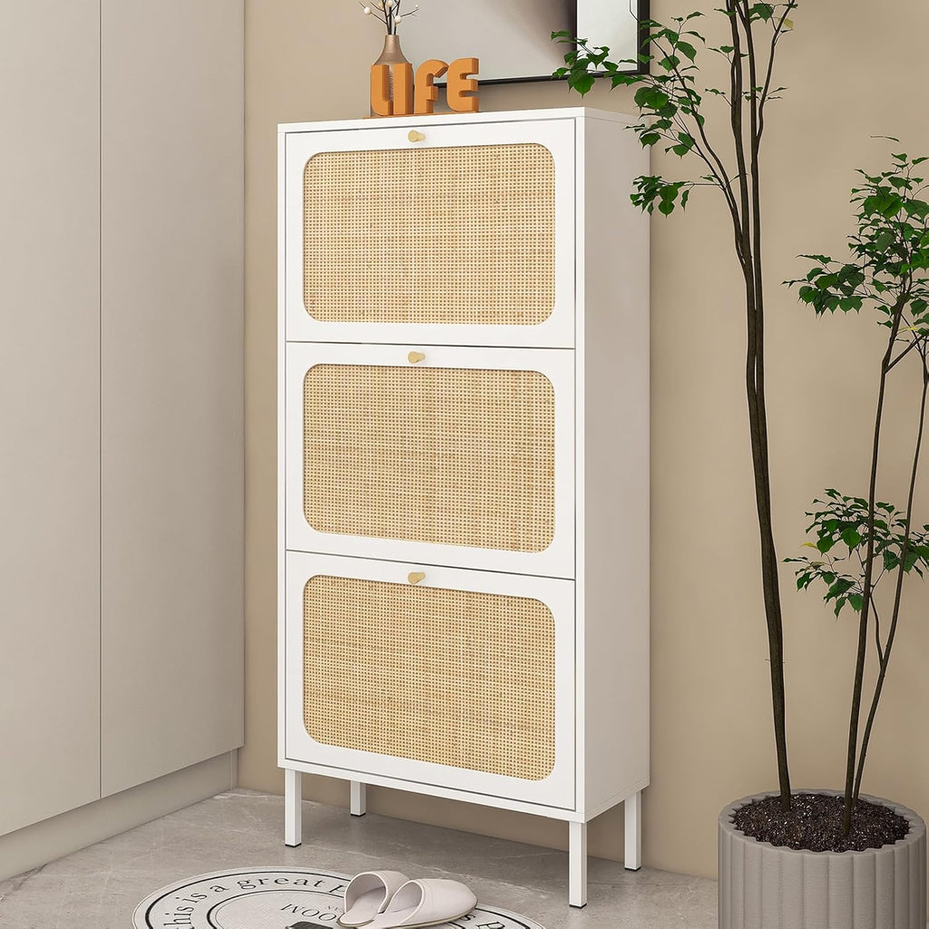 - Gavetas giratórias espaçosas: o armário de sapatos contém 3 gavetas flip, cada gaveta tem 2 compartimentos. Suporta tamanho masculino dentro de 8,5 e tamanho feminino dentro de 10.