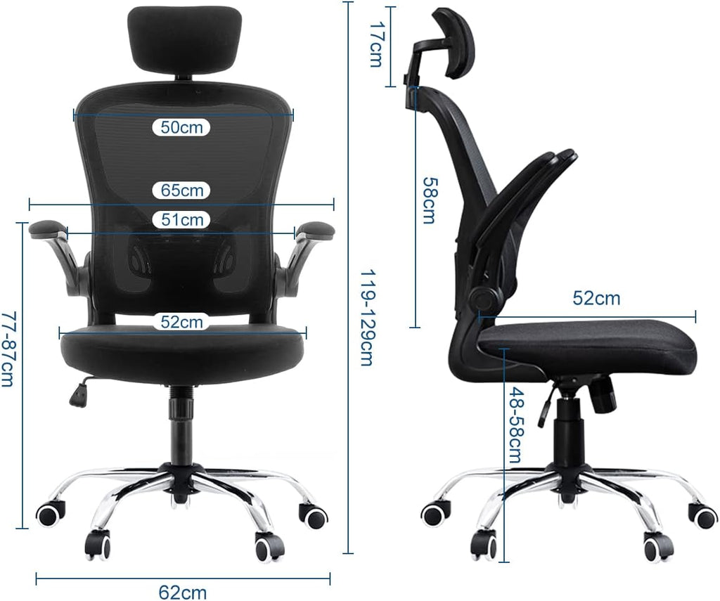 - 🏡【Cadeira de escritório confortável】Para alguns usuários com pernas mais longas, a cadeira ergonômica é uma boa escolha. Você pode ajustar livremente a altura do assento e permitir que seus pés toquem o chão de forma confortável. Tamanho da cadeira inteira (LxPxA): 62*63*45-119-129 CM. Capacidade máxima: 200KG.